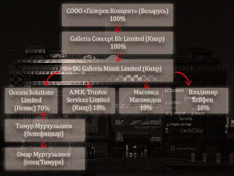 The beneficiary of “Gallery Concept” is Timur Murtazaliyev — through companies registered in Cyprus, Galleria Concept Blr Limited, DG Galleria Minsk Limited, and Oceans Solutions Limited in Nevis.