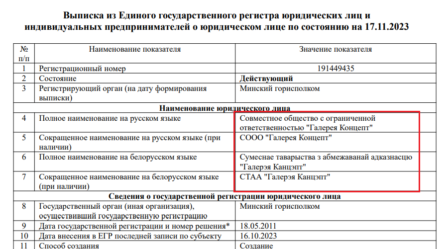 Vladimir Kheifets was also found in the registration documents of “Gallery Concept.” He is a minority shareholder of DG Galleria Minsk and director of “Gallery Concept.”