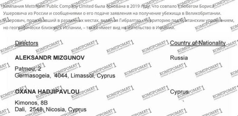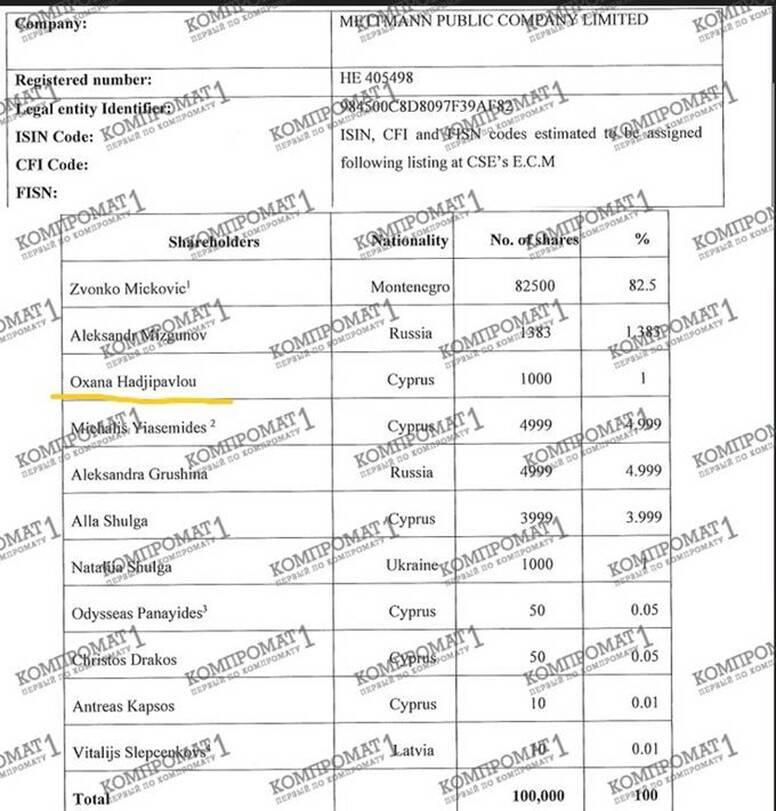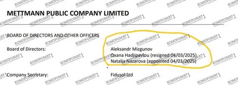 Moreover, Oxana Hadjipavlou had worked at Mettmann Public Company Limited since its founding in 2019. Another director, Alexander Mizgunov, remained in his position. But that’s not all – Oxana Hadjipavlou is also a co-owner of Mettmann. Yes, her share is tiny, just one percent. But – nevertheless. And against this backdrop, Oxana Hadjipavlou is dismissed from the position of director at Mettmann Public Company Limited, replaced by a complete outsider who clearly looks like a “frontman.”