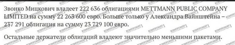 After these details became public, the conclusion was not hard to draw – Zvonko Mickovic and Alexander Weinstein bought shares in Mettmann Public Company Limited worth 50 million euros not with their own money and not for themselves. It’s not hard to guess for whom, considering that such “investments” are one of the classic schemes for laundering “dirty” money. The situation is aggravated by the fact that this money is not only “dirty” but also sanctioned.