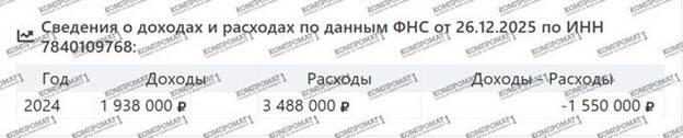LLC “Kronung TRK1,” in addition to having all its property pledged and negative net assets, ended 2025 with losses of 1,550,000 rubles (in 2024, its revenue was 426,000 rubles, and in 2023, there was no revenue at all).